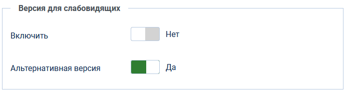 Версию сайта для слабовидящих можно отключить в настройках шаблона на вкладке Дополнительно.