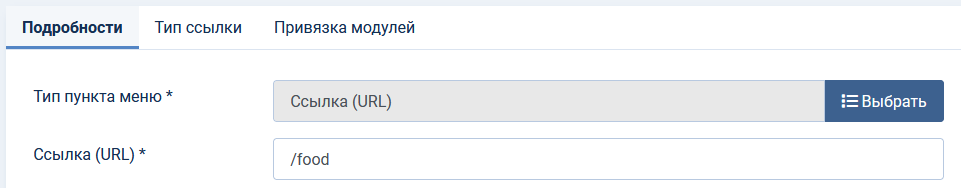 - Обязательное имя раздела: «food».