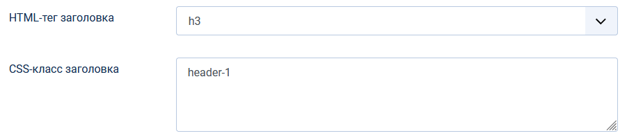 Дополнительно есть возможность стилизовать заголовок данного модуля. Для этого в поле CSS-класс заголовка добавьте класс header-1 (заголовок по центру) или header-2 (заголовок по левому краю).
